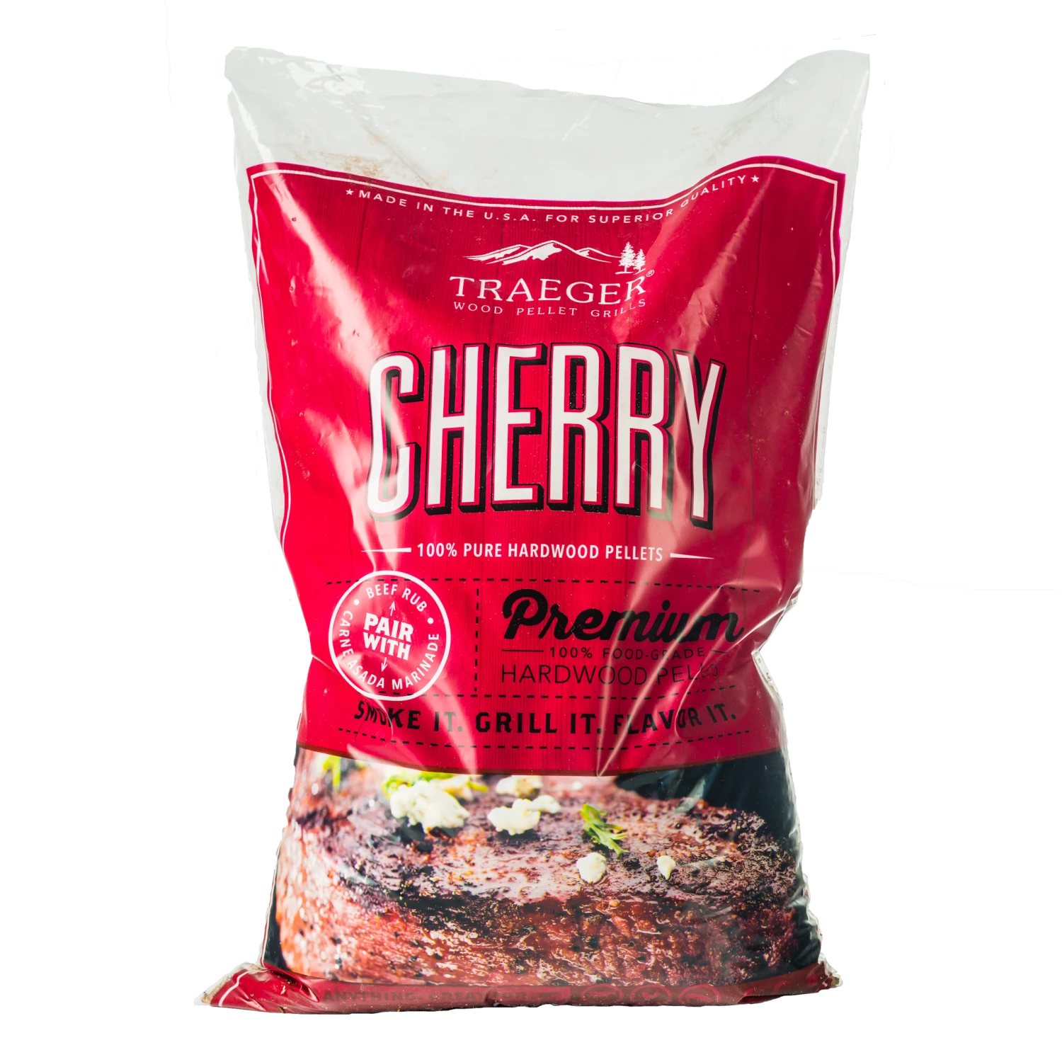 Mit den Kirsche Hartholz Pellets von Traeger veredelt Ihr Euer Grillgut auf natürliche Weise mit einem subtil süßen, fruchtigen Geschmack.